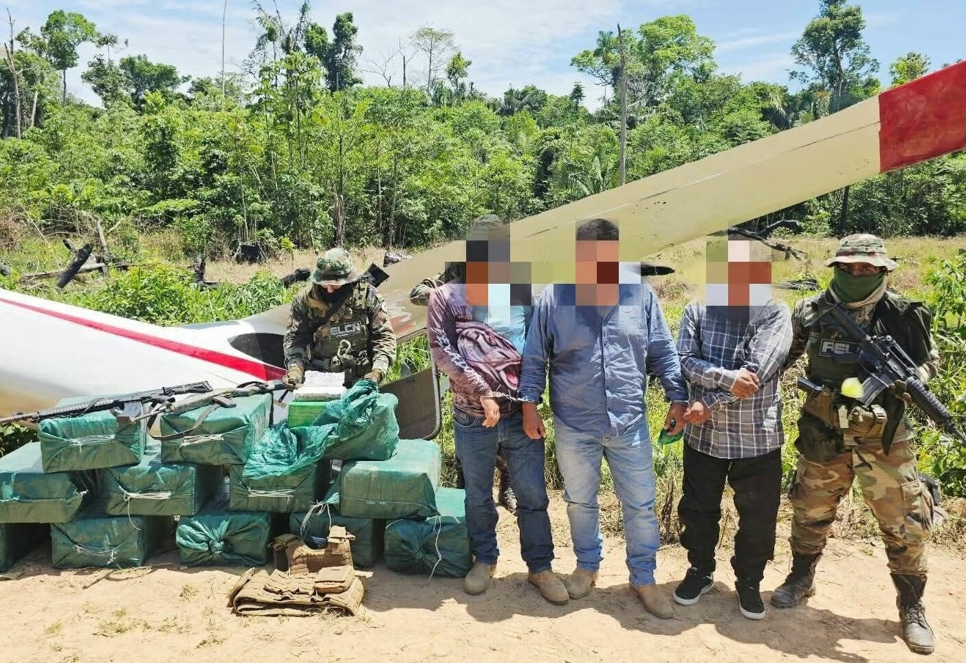 Durante la requisa, la policía antidroga secuestró 350 paquetes de droga, que representan 383 kilos de clorhidrato de cocaína. Asimismo, decomisó fusiles y escopetas.